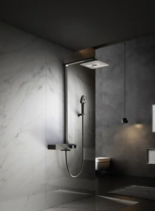 Vincea | Душевая стойка Inspire VSFS-3I13TMB термостатическая с изливом, черный.