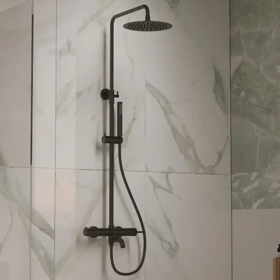 Vincea | Душевая стойка Villa VSFS-1VL1MB с изливом, верхний душ из нержавеющей стали D25, черный.