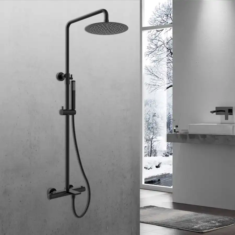 Vincea | Душевая стойка Vogue VSFS-1V1TMB термостатическая, верхний душ из нержавеющей стали D25 черный.