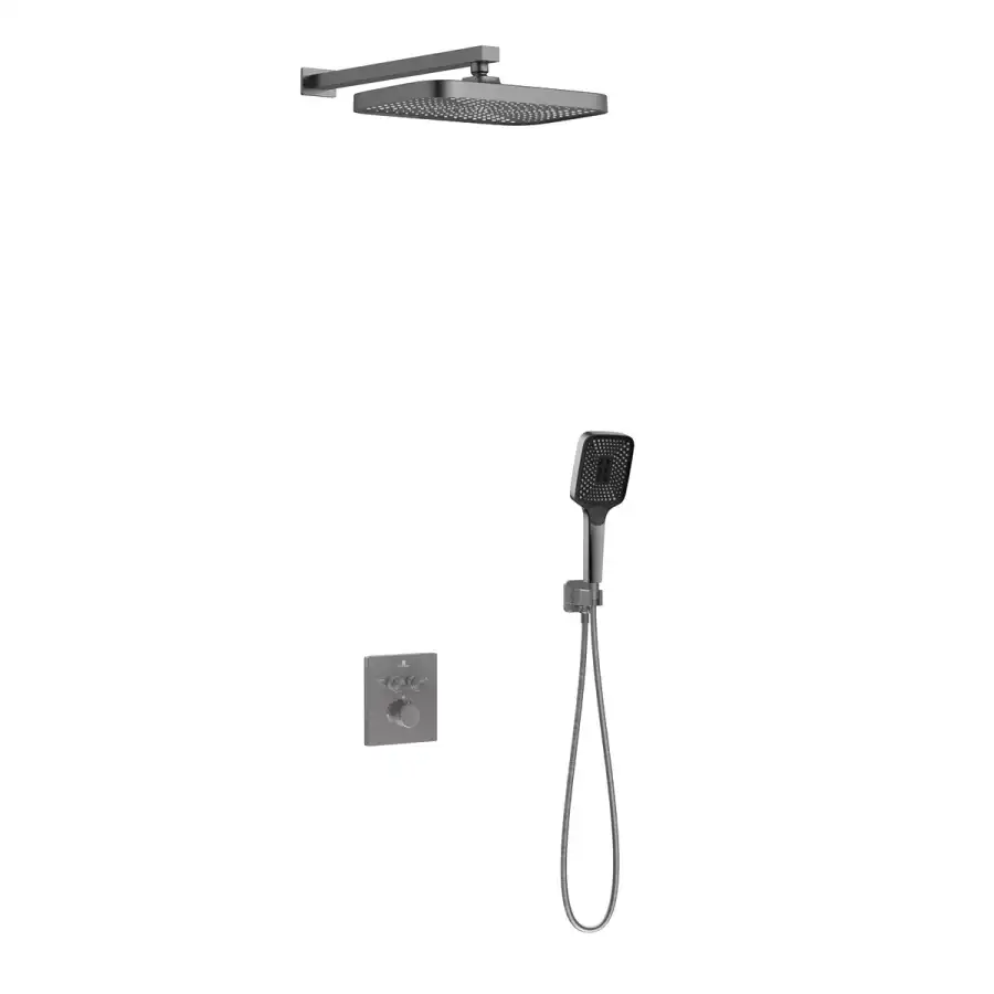 Vincea | Душевой комплект VSFW-321MT1GM встраиваемый, термостат, двухрежимный, вороненая сталь.