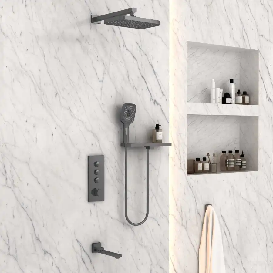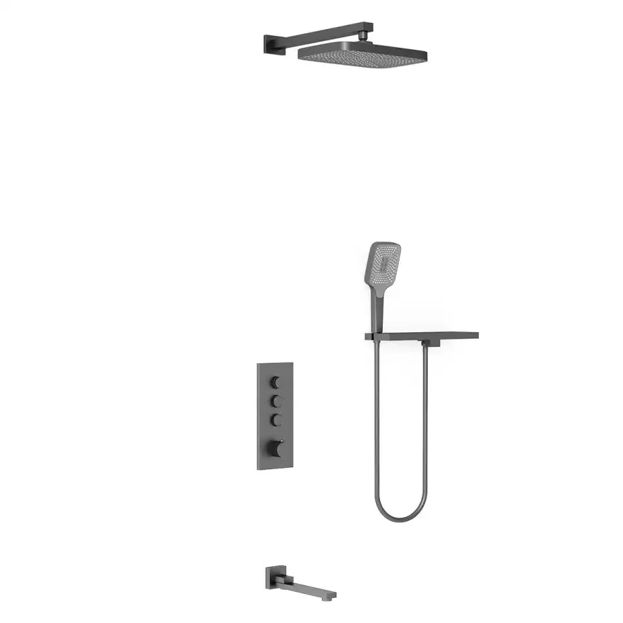 Vincea | Душевой комплект VSFW-431T1RGM встраиваемый, термостатический, 3 режима, вороненая сталь.