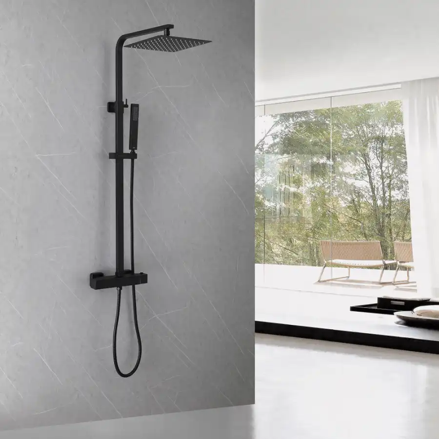 Душевая стойка ABBER Daheim AF8260B с термостатом без излива, черный матовый