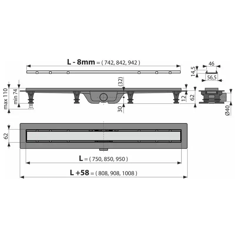 Душевой лоток AlcaPlast APZ19-850 Simple с решеткой под плитку / Нержавеющая сталь