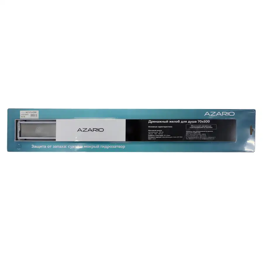 Душевой лоток AZARIO 800 мм, D40(50), решетка из нержавеющей стали "под плитку", металлический желоб, поворот 360°, комбинированный затвор (AZT3TILE800)