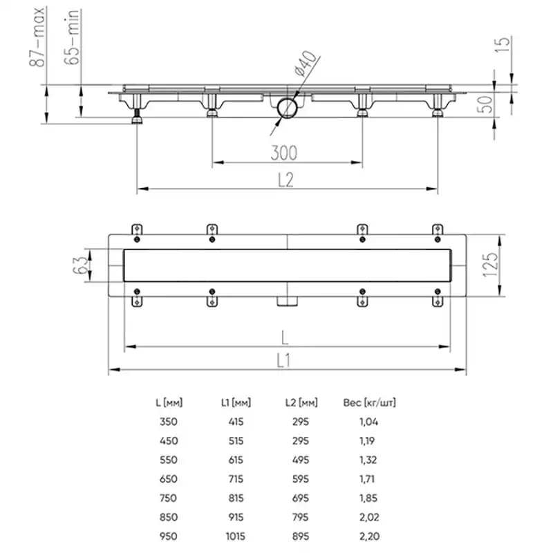 Диаметр слива (мм)40