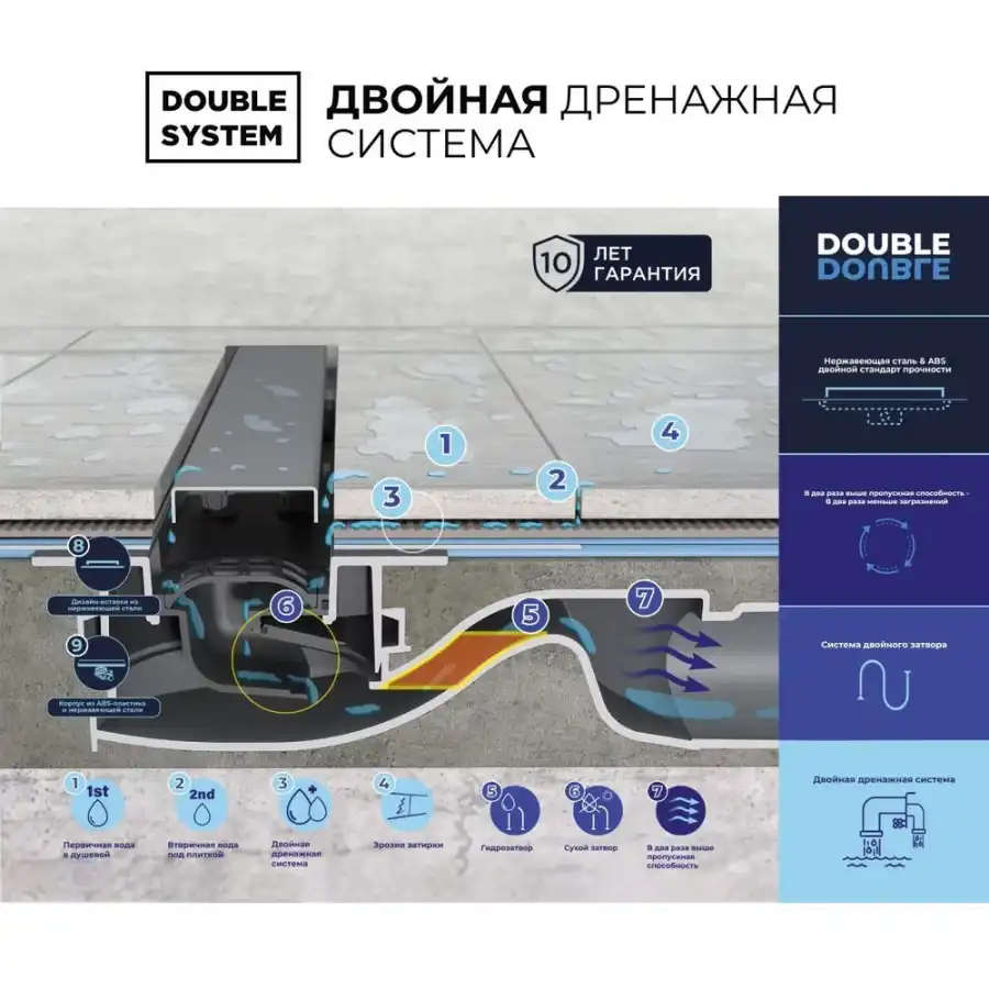 Двойная дренажная система — отвод основного потока и вторичного конденсата.
