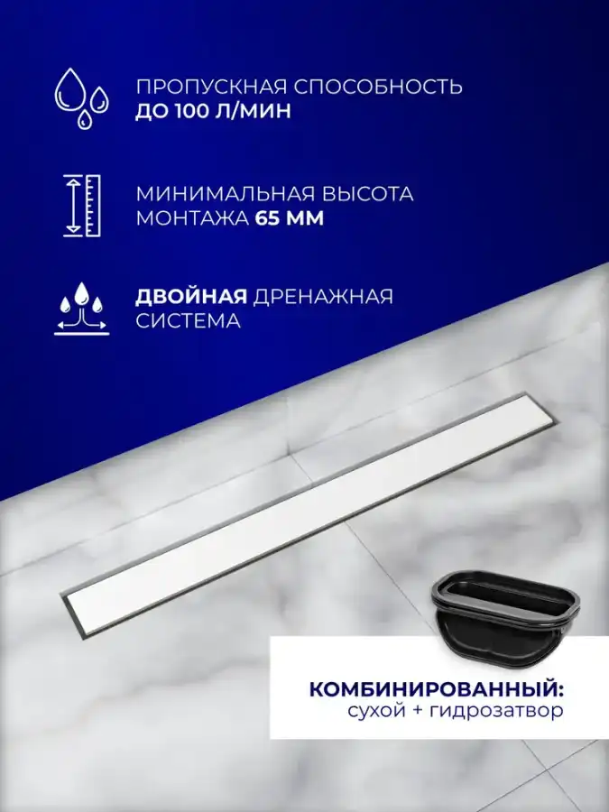 Линейный трап Bettoserb серии Frameless Matte White 850 — это инновационное решение для душевых зон. Он объединяет два дизайна в одной модели, что позволяет адаптировать его к любому интерьеру. Трап имеет минимальную монтажную высоту всего 62 мм, что делает его идеальным выбором для современных проектов, где каждый миллиметр на счету.