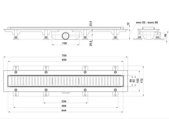 Душевой лоток Good Door 650 с перфорированной решеткой, сухой затвор ТЛ00034, Черный матовый