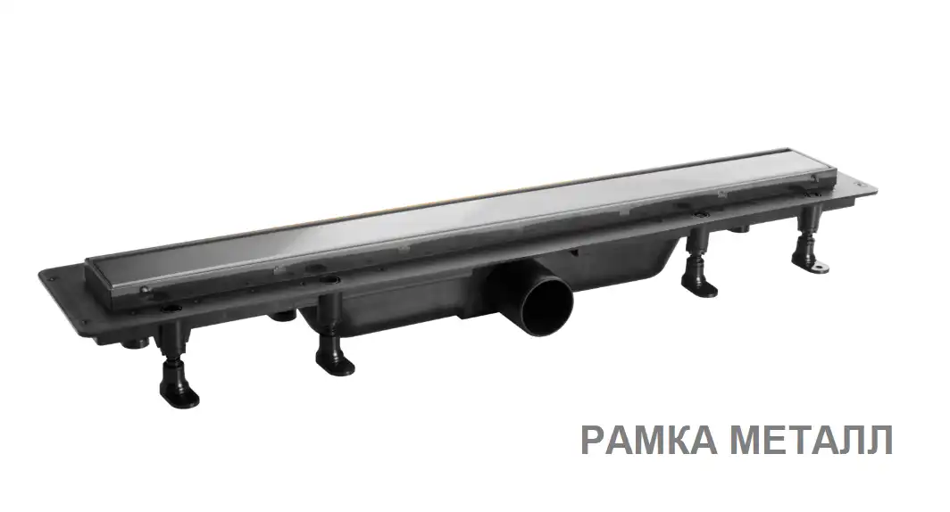 Душевой трап с металлической рамкой и решёткой DESIGN 4 (под кладку плитки, 2 в 1), оснащён комбинированным сифоном, цвет оружейный металл, L=750 мм