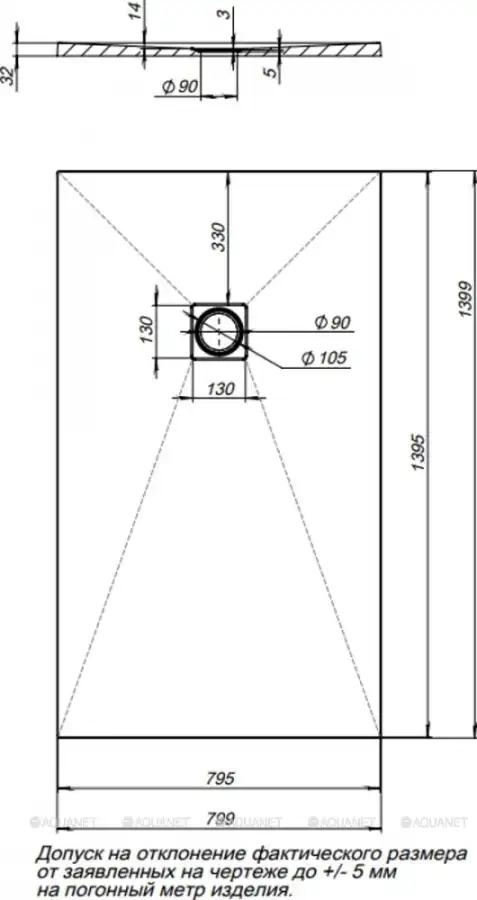 Душевой поддон из искусственного камня Aquanet Pleasure 140х80 черный