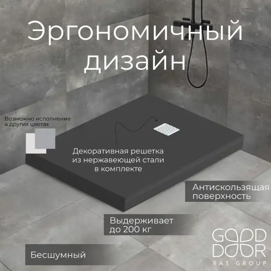 Душевой поддон Good Door Essentia 140х80 из искусственного камня, Черный ЛП00095, диаметр слива 90 мм. Каркас, фронтальная панель, сифон приобретается отдельно.