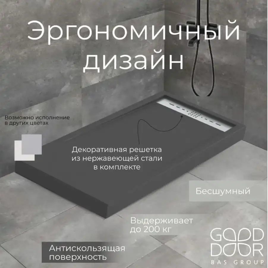 Душевой поддон Good Door Stella 120х90 из искусственного камня, Черный ЛП00159, диаметр слива 90 мм. Каркас, фронтальная панель, сифон приобретается отдельно.