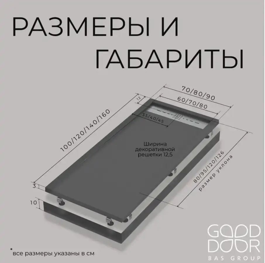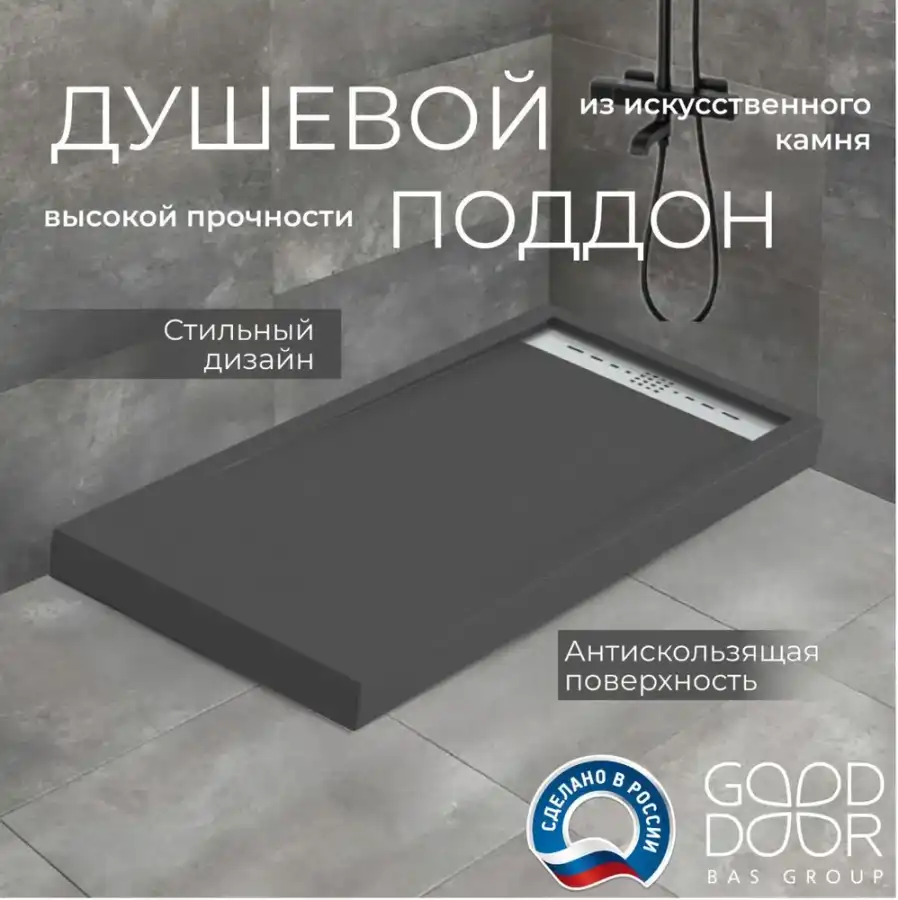 Душевой поддон Good Door Stella 140х70 из искусственного камня, Черный ЛП00160, диаметр слива 90 мм. Каркас, фронтальная панель, сифон приобретается отдельно.