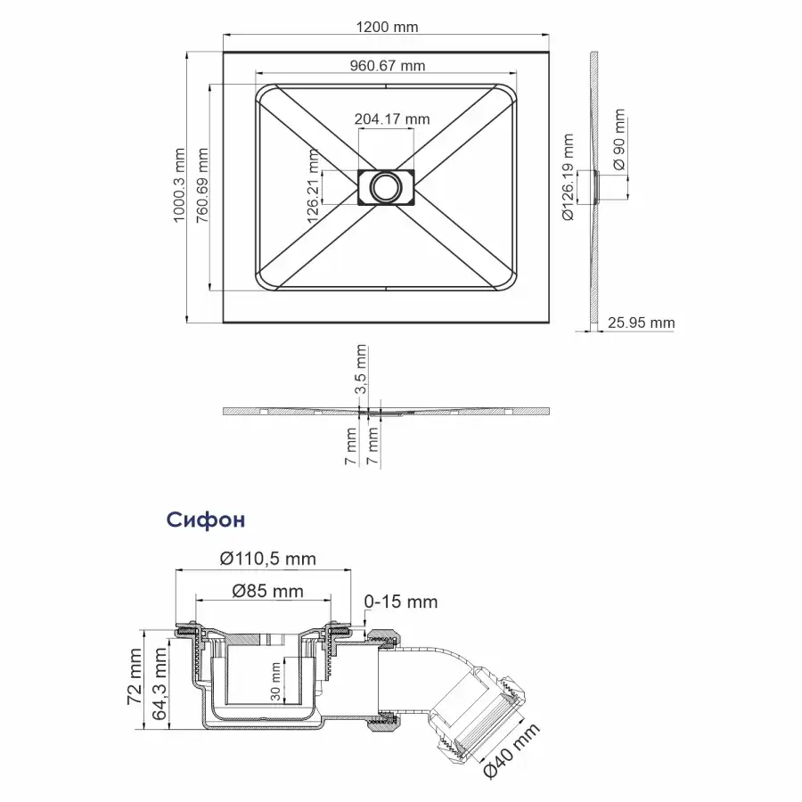 Душевой поддон WasserKRAFT Elbe 74T 120х100 из стеклопластика 74T10 Черный