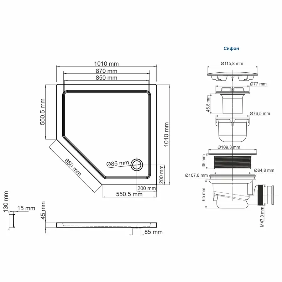 5) В комплект входит сифон с ситечком и гидрозатвором
