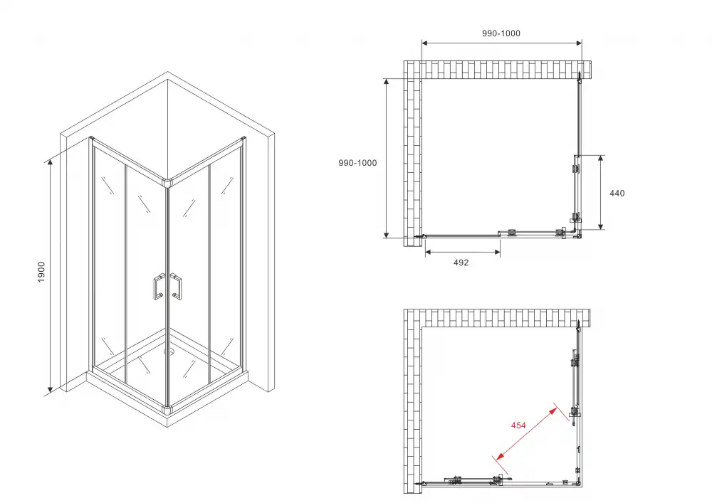 Душевой уголок Abber Schwarzer Diamant AG021005, размер 100х100х190 см, стекло Прозрачное 5 мм, профиль Хром. Конструкция дверей раздвижная. Форма Квадратная. Поддон приобретается отдельно.