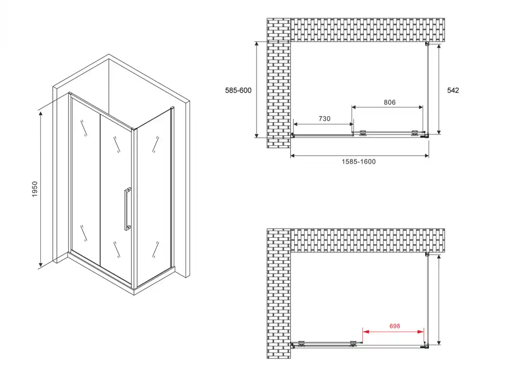 Душевой уголок ABBER Schwarzer Diamant 160х60 см, AG30160H-S60, профиль хром, стекло прозрачное