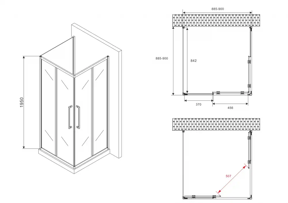 Душевой уголок Abber Schwarzer Diamant AG02090BH-S90B, размер 90х90х195 см, стекло Прозрачное 6 мм, профиль Черный. Конструкция дверей раздвижная. Форма Квадратная. Поддон приобретается отдельно.