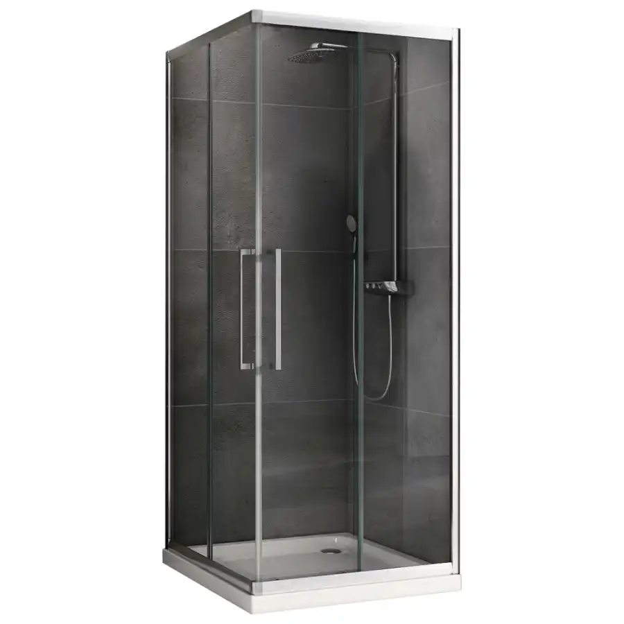 Душевой уголок Abber Schwarzer Diamant AG02090H, размер 90х90х195 см, стекло Прозрачное 6 мм, профиль Хром. Конструкция дверей раздвижная. Форма Квадратная. Поддон приобретается отдельно.