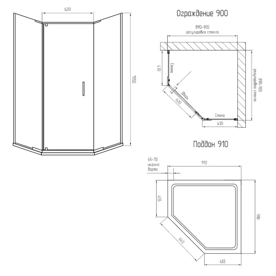 Душевой уголок AVS Трапеция Слим 90x90 профиль золото, стекло прозрачное, 803-0001-195-9090-GG-T