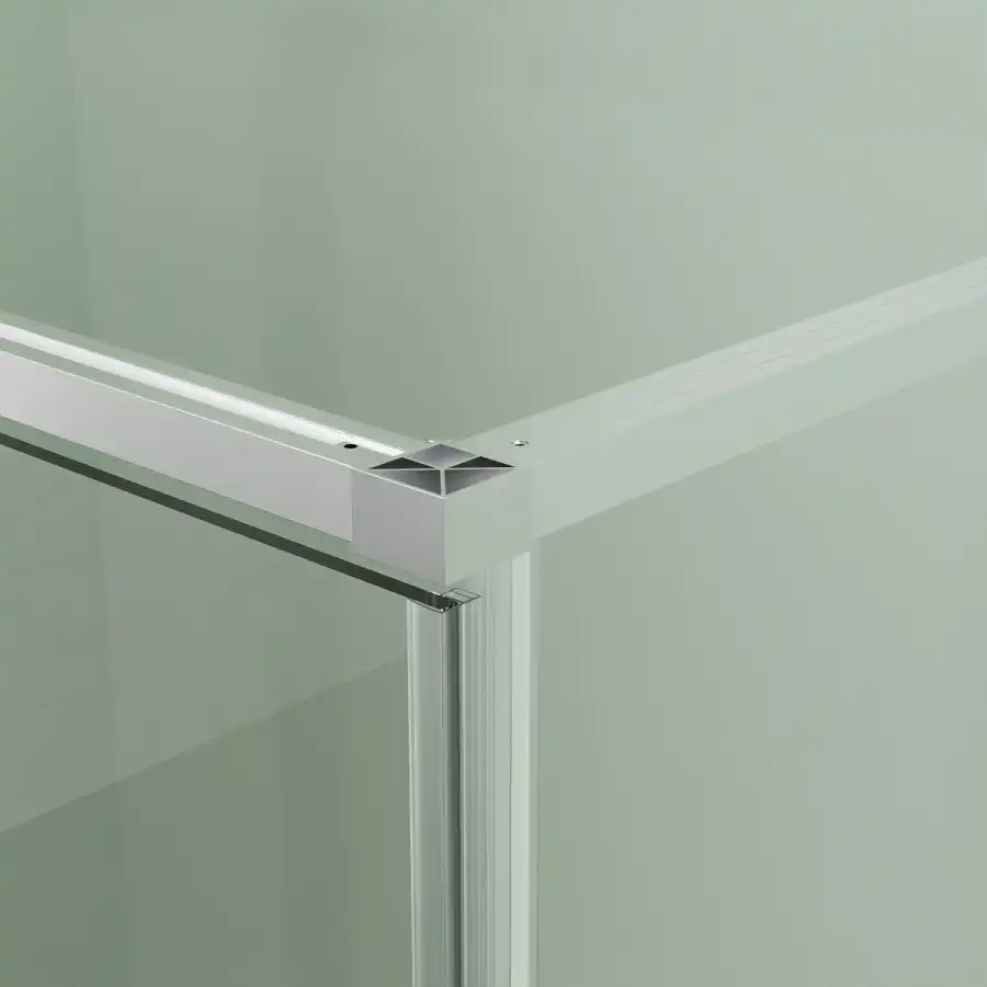 Квадратный или прямоугольный душевой уголок, с одной распашной дверью, на усиленных универсальных поворотных петлях из нержавеющей стали. Ручка выполнена из латуни в цвет профиля. Все стекла имеют толщину 6 мм. Профиль выполнен из анодированного алюминия.