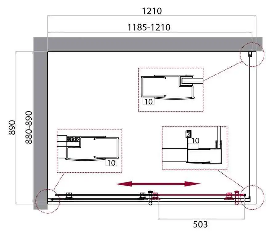 Регулировка ширины: предусмотрена за счет боковых профилей