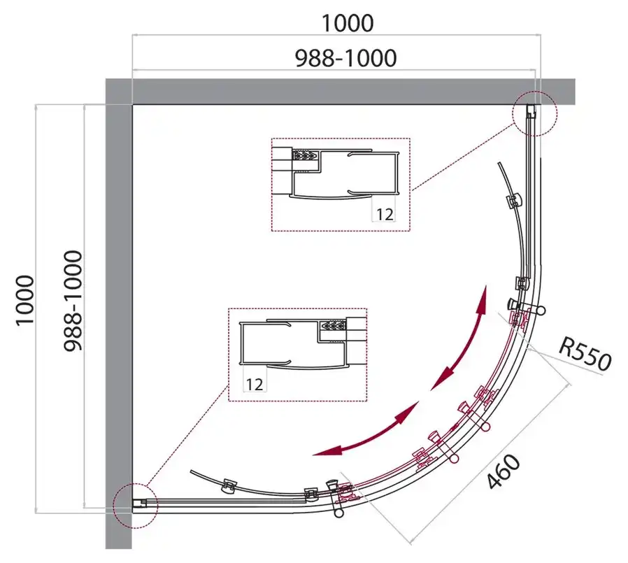 Душевой уголок BelBagno UNO-195 UNO-195-R-2-100-CH-CR, размер 100х100х195 см, стекло Рифленное 5 мм, профиль Хром. Конструкция дверей раздвижная. Форма Четверть круга. Поддон приобретается отдельно.