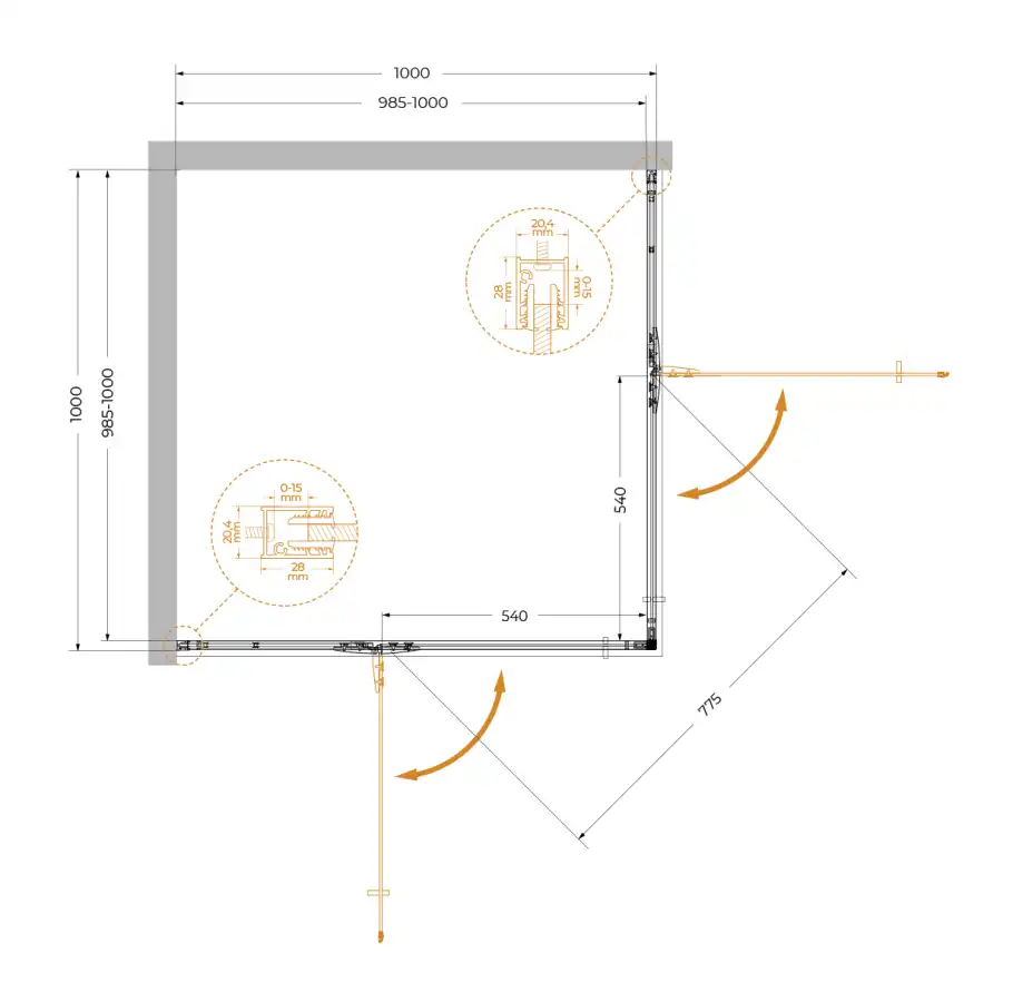 Душевой уголок Cezares LINER-A-2-100-C-Cr профиль Хром, стекло Прозрачное