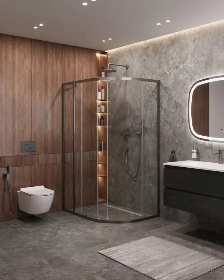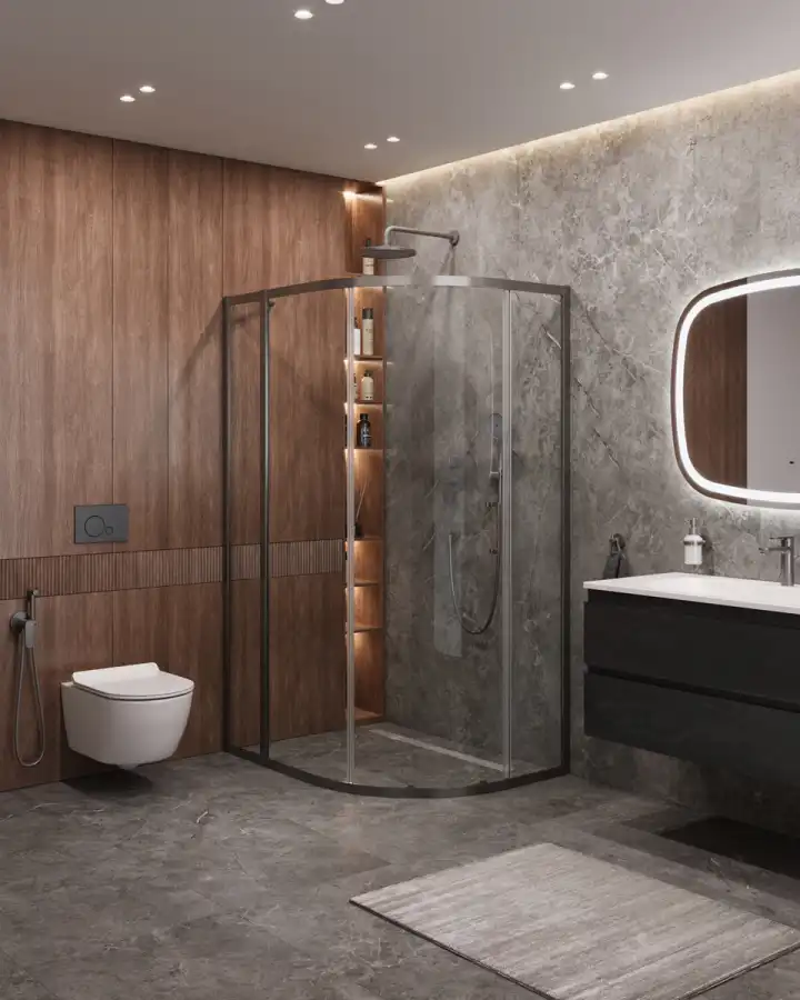 Душевой уголок CEZARES MOLVENO-RH-1-110/90-C-GM-IV профиль Оружейная сталь, Прозрачное стекло 6 мм. Конструкция дверей - Раздвижная.