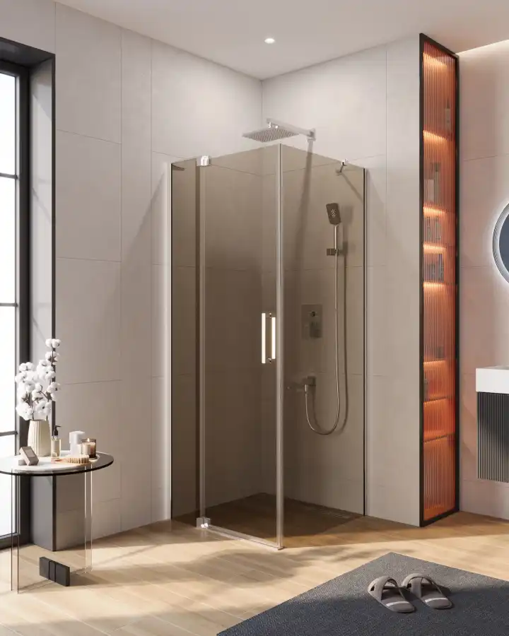 Душевой уголок CEZARES SLIDER-AH-1-80-70/80-BR-Cr профиль Хром, Tонированная бронза стекло 8 мм. Конструкция дверей - Распашная.