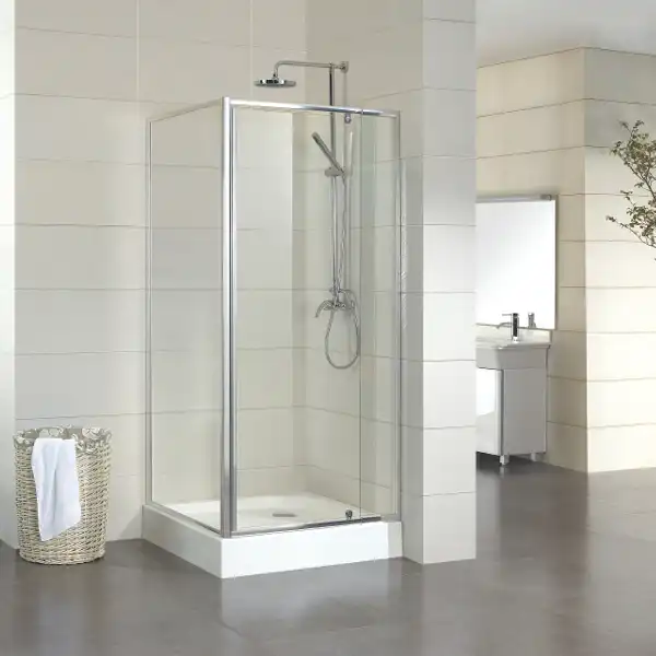 Душевое ограждение Cube уникально тем, что может собираться в двух размерах за счет телескопических направляющих: 900х900 и 1000х900 мм.