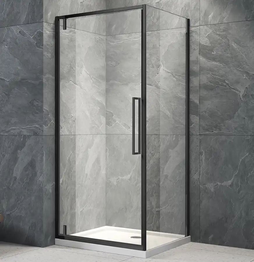 Душевой угол Veconi Rovigo RV-033B, 900х700х1950 черный, стекло прозрачное 6 мм, конструкция двери Распашная RV033B-9070-01-C7