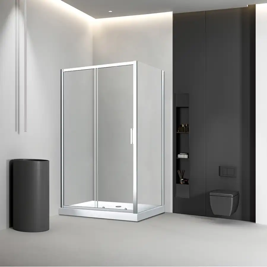 Душевой угол Veconi Rovigo RV-046, 1000х800х1850, хром, стекло прозрачное 6 мм, конструкция двери Раздвижная RV046-10080-01-C5
