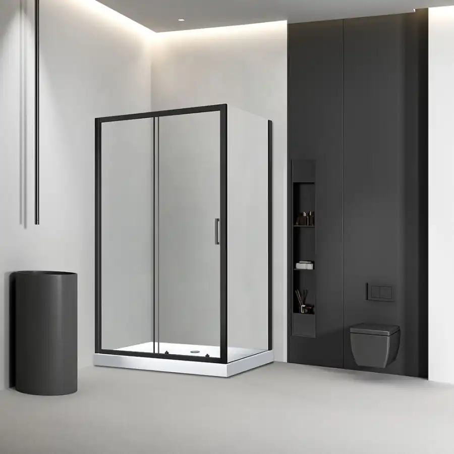 Душевой угол Veconi Rovigo RV-046B, 1400х1200х1950, черный, стекло прозрачное 6 мм, конструкция двери Раздвижная RV046B-140120-01-C5