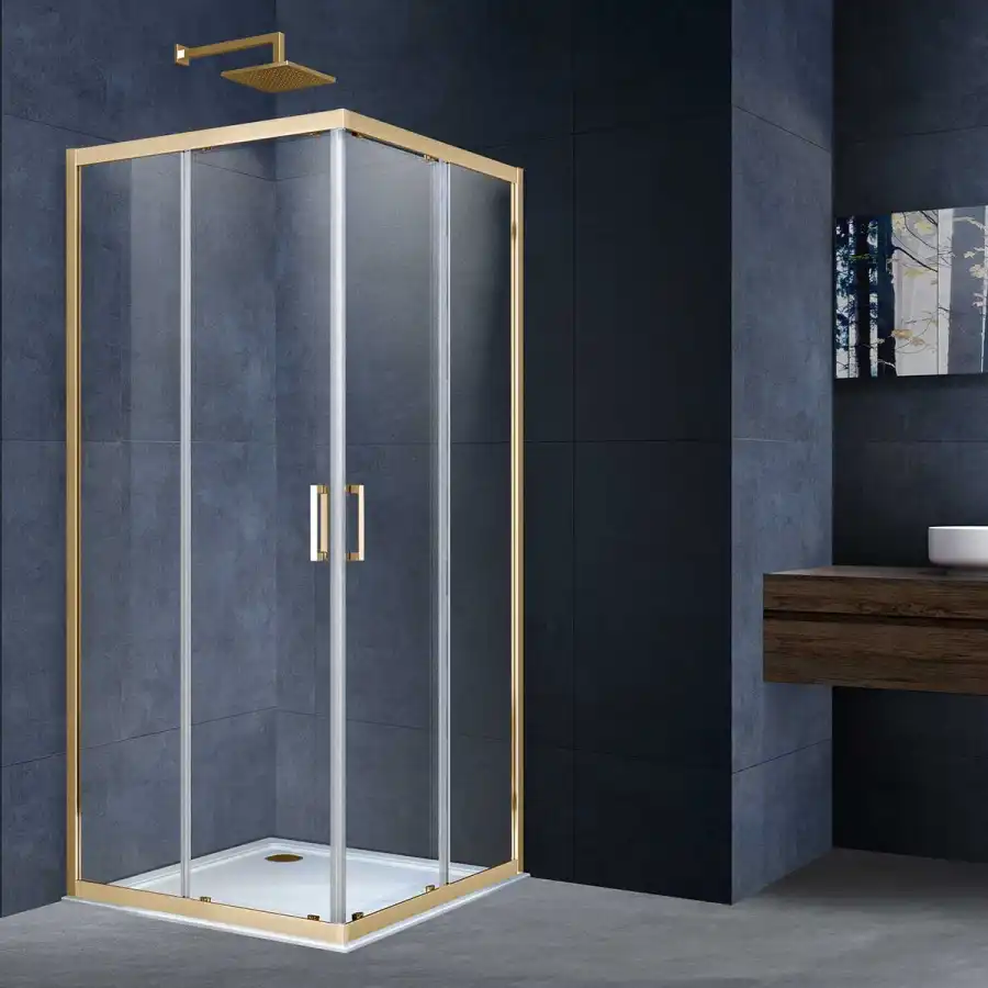 Душевой уголок Vincea Alpha VSS-3AL100CLG, размер 100х100х190 см, стекло Прозрачное 6 мм, профиль Золото. Конструкция дверей раздвижная. Форма Квадратная. Поддон приобретается отдельно.