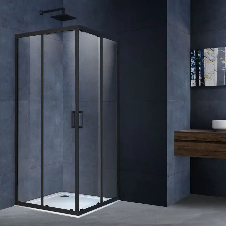 Душевой уголок Vincea Alpha VSS-3AL900CLB, размер 90х90х190 см, стекло Прозрачное 6 мм, профиль Черный. Конструкция дверей раздвижная. Форма Квадратная. Поддон приобретается отдельно.
