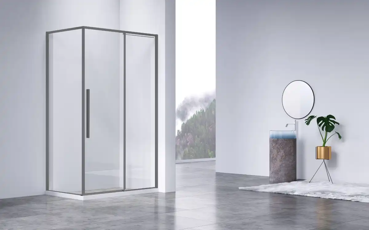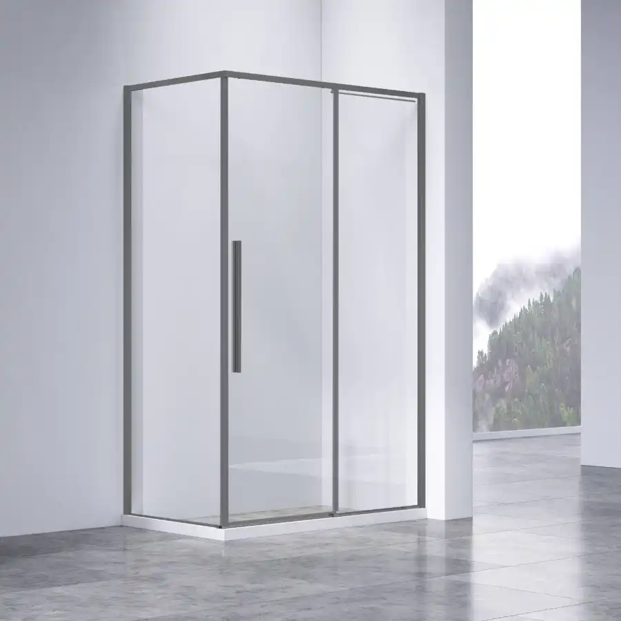 Душевой уголок Vincea Slim-N 110х90 VSR-4SN9011CLGM, дверь раздвижная, профиль вороненая сталь, стекло прозрачное 6 мм, высота 200 см.