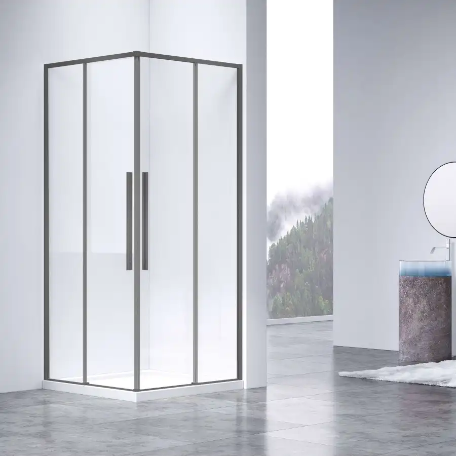 Душевой уголок Vincea Slim-N 90х90 VSS-4SN900CLGM, дверь раздвижная, профиль вороненая сталь, стекло прозрачное 8 мм, высота 195 см.
