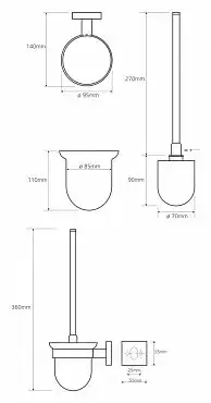 Ершик для унитаза подвесной щётка черная 9,5 см BEMETA BETA хром 132113017