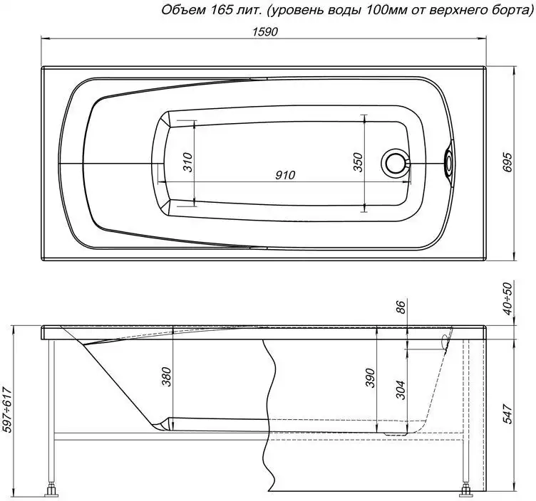 Фронтальный экран выполнен из пластика и предназначен для закрывания нижней части ванны. Предает ванне эстетический вид и красату.