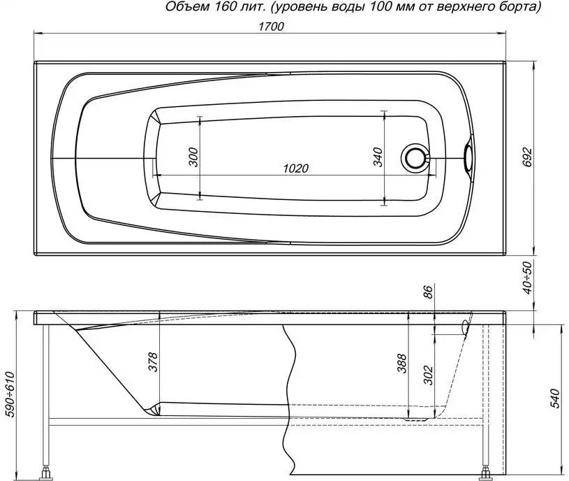 Фронтальный экран выполнен из пластика и предназначен для закрывания нижней части ванны. Предает ванне эстетический вид и красату.