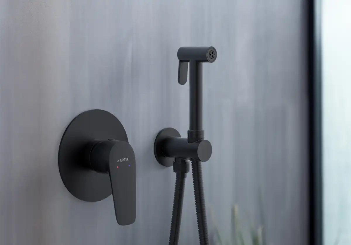 Набор с гигиеническим душем (смеситель + гигиеническая лейка + шланг + шланговое подсоединение с держателем) AQUATEK, матовый черный AQ1119MB БЕТТА
