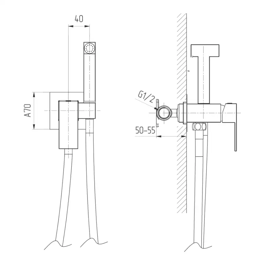 Гигиенический душ со смесителем AVS Cube 811-231-GM, оружейная сталь
