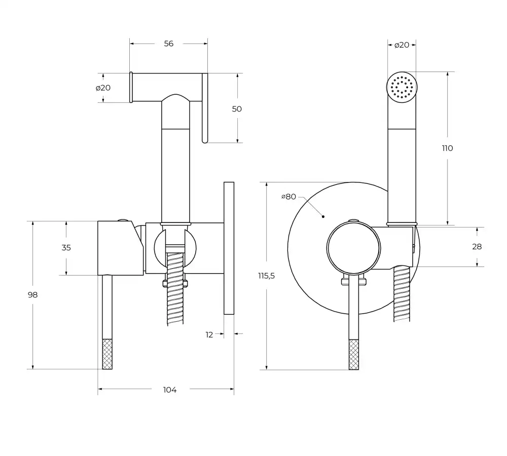 CEZARES | RELAX-DIF-01 Гигиенический душ со смесителем, хром.