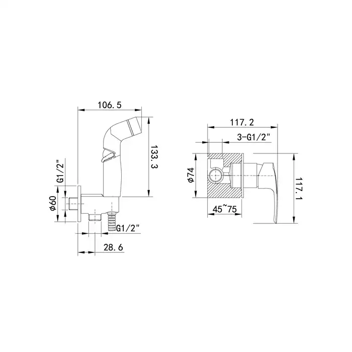 Встраиваемый смеситель с гигиеническим душем, Ray, IDDIS, RAYSBR2i08