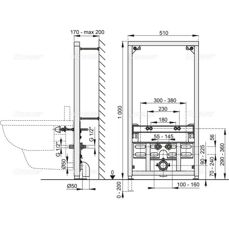 Инсталляция для биде Alcaplast A105/1000