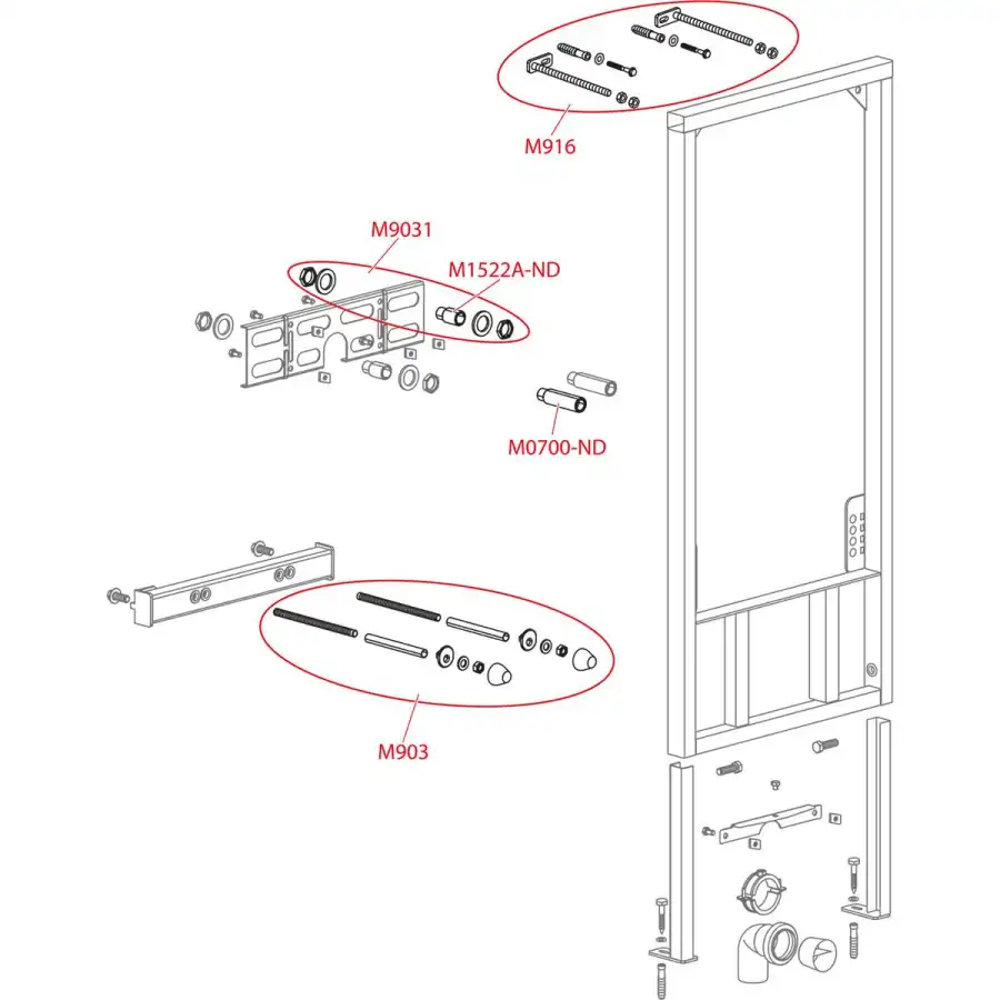 КомплектацияСамонесущая рама Монтажный комплект: винт ?8?60 – 4 шт., дюбель ?12 – 4 шт. Монтажный комплект для крепления биде: шпилька М12 – 2 шт., шайба – 4 шт., колпачок – 2 шт., гайка – 2