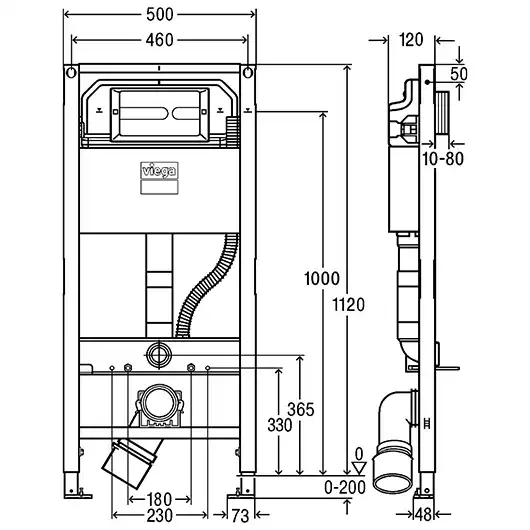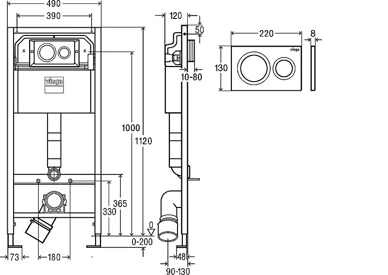Инсталляция Viega Prevista Dry 792855 для подвесных унитазов с клавишей смыва Хром