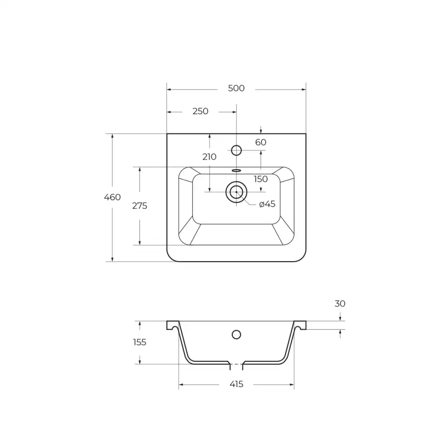 Форма раковиныПрямоугольная
