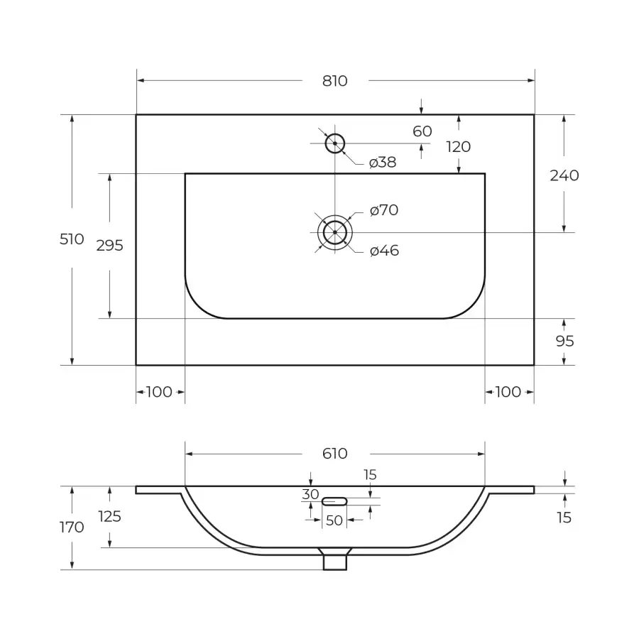 Керамическая раковина CZR-8099-80/50, 810x510x170